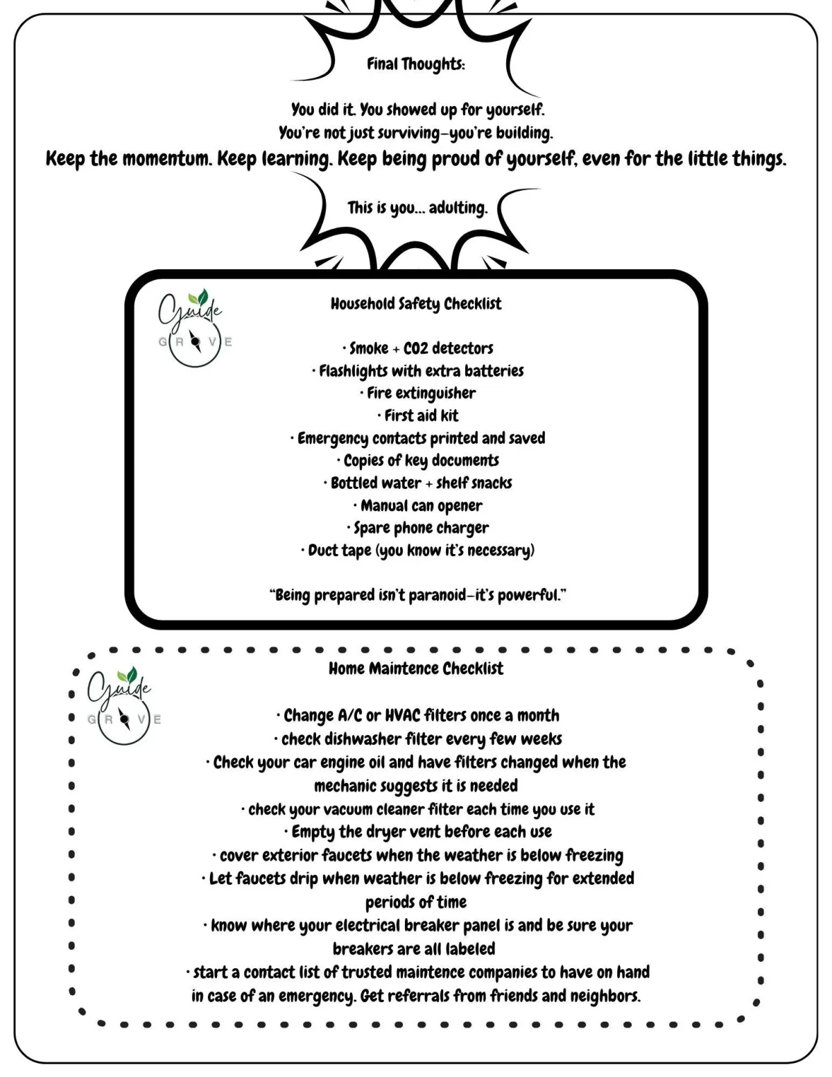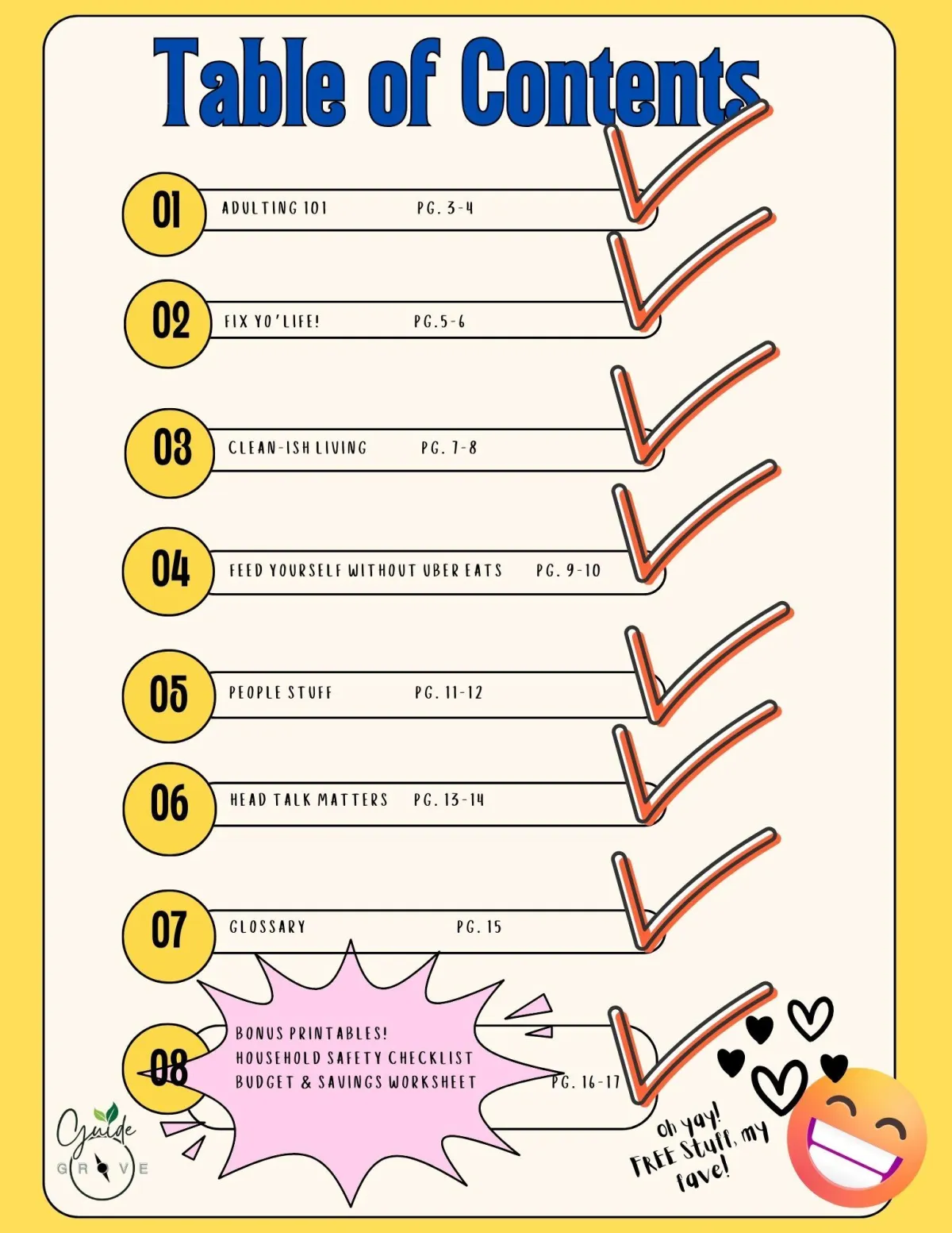 You are getting a copy of the "This is Me...Adulting" eguide, available instantly. The eguide is a 20 page full color guide that includes advice, tips, articles and a glossary. You are getting our "how to' videos. You are getting our bonus printable checklists. You’re getting the 7 Simple Habits bonus and our 18 page This is Me...Adulting coloring booklet.